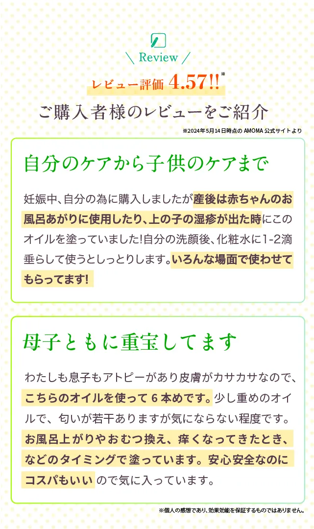 カレンデュラオイルのよくあるご質問 Amazonアカウントで簡単お申込み! Amazonに登録しているお支払い情報、お届け先情報を使用して簡単にお申込みが可能です。 入力でお困りですか? × Amazon Pay ならアマゾンに登録してある住所やクレジットカードをそのまま使えるため、入力不要で簡単に注文できます。 お客様情報のご入力 入力を省略する(当サイトで購入したことがある方) 下記項目にご入力の上、先にログインしてください。 メールアドレス 必須 パスワード 必須 パスワードを忘れた方はこちら 必須項目が -- 項目あります。 残り -- 項目 全て入力されています。 下記お客さま情報を全てご記入いただき、お申し込みボタンをクリックしてください。 商品名 必須 お名前 必須 姓: 名: フリガナ 必須 セイ: メイ: 郵便番号 必須 〒 都道府県 必須 選択してください 北海道 青森県 岩手県 宮城県 秋田県 山形県 福島県 茨城県 栃木県 群馬県 埼玉県 千葉県 東京都 神奈川県 新潟県 富山県 石川県 福井県 山梨県 長野県 岐阜県 静岡県 愛知県 三重県 滋賀県 京都府 大阪府 兵庫県 奈良県 和歌山県 鳥取県 島根県 岡山県 広島県 山口県 徳島県 香川県 愛媛県 高知県 福岡県 佐賀県 長崎県 熊本県 大分県 宮崎県 鹿児島県 沖縄県 郡市区町村 必須 丁目・番地 必須 建物名・号室 電話番号 必須 メールアドレス 必須 メールアドレス(確認) 必須 メールアドレスに誤りがありますとメールが届きません。今一度ご確認ください。 パスワード 必須 生年月日 必須 1925 年 1926 年 1927 年 1928 年 1929 年 1930 年 1931 年 1932 年 1933 年 1934 年 1935 年 1936 年 1937 年 1938 年 1939 年 1940 年 1941 年 1942 年 1943 年 1944 年 1945 年 1946 年 1947 年 1948 年 1949 年 1950 年 1951 年 1952 年 1953 年 1954 年 1955 年 1956 年 1957 年 1958 年 1959 年 1960 年 1961 年 1962 年 1963 年 1964 年 1965 年 1966 年 1967 年 1968 年 1969 年 1970 年 1971 年 1972 年 1973 年 1974 年 1975 年 1976 年 1977 年 1978 年 1979 年 1980 年 1981 年 1982 年 1983 年 1984 年 1985 年 1986 年 1987 年 1988 年 1989 年 ---- 1990 年 1991 年 1992 年 1993 年 1994 年 1995 年 1996 年 1997 年 1998 年 1999 年 2000 年 2001 年 2002 年 2003 年 2004 年 2005 年 2006 年 2007 年 2008 年 2009 年 2010 年 2011 年 2012 年 2013 年 2014 年 2015 年 2016 年 2017 年 2018 年 2019 年 2020 年 2021 年 2022 年 2023 年 2024 年 2025 年 -- 1 月 2 月 3 月 4 月 5 月 6 月 7 月 8 月 9 月 10 月 11 月 12 月 -- 1 日 2 日 3 日 4 日 5 日 6 日 7 日 8 日 9 日 10 日 11 日 12 日 13 日 14 日 15 日 16 日 17 日 18 日 19 日 20 日 21 日 22 日 23 日 24 日 25 日 26 日 27 日 28 日 29 日 30 日 31 日 false お届け先情報 お届け先住所 必須 上記住所と同じ 新しく入力する お名前 必須 姓: 名: フリガナ 必須 セイ: メイ: 郵便番号 必須 〒 都道府県 必須 選択してください 北海道 青森県 岩手県 宮城県 秋田県 山形県 福島県 茨城県 栃木県 群馬県 埼玉県 千葉県 東京都 神奈川県 新潟県 富山県 石川県 福井県 山梨県 長野県 岐阜県 静岡県 愛知県 三重県 滋賀県 京都府 大阪府 兵庫県 奈良県 和歌山県 鳥取県 島根県 岡山県 広島県 山口県 徳島県 香川県 愛媛県 高知県 福岡県 佐賀県 長崎県 熊本県 大分県 宮崎県 鹿児島県 沖縄県 郡市区町村 必須 丁目・番地 必須 建物名・号室 電話番号 必須 招待コード 招待コード ※招待コードをお持ちのお客様はこちらにご入力下さい。 クーポン利用 クーポンコード お支払い情報 お支払い方法 必須 クレジットカード Amazon Pay コンビニ後払い(スコア後払い) ⬇ 下記にチェックを入れてください 必須 お支払い回数 必須 -- 2 3 4 5 6 7 8 9 10 11 12 13 14 15 16 17 18 19 20 21 22 23 24 クレジットカード番号 必須 ※ 数字のみで続けて入力してください。 カードの有効期限 必須 1 2 3 4 5 6 7 8 9 10 11 12 月 25 26 27 28 29 30 31 32 33 34 35 36 37 38 39 40 年 例)カードの表記03/18→03月/18年 カードの名義人 必須 セキュリティコード 必須 (VISA MasterCard JCB 等) カード裏面に印字されている下3桁の数字 (American Express) クレジットカードの表面(メインのカード番号の右上)に記載されている 4 桁の数字 配送業者の指定 配送業者 必須 受取場所の指定 受取場所 第1希望 受取場所 第2希望 チャイム あり なし お届け日の指定 お届けサイクルの指定 必須 日付で指定 間隔で指定 曜日で指定 必須 1ヶ月 2ヶ月 3ヶ月 4ヶ月 5ヶ月 6ヶ月 7ヶ月 8ヶ月 9ヶ月 10ヶ月 11ヶ月 12ヶ月 ごとの 1日 2日 3日 4日 5日 6日 7日 8日 9日 10日 11日 12日 13日 14日 15日 16日 17日 18日 19日 20日 21日 22日 23日 24日 25日 26日 27日 28日 末日 に配送 必須 ごとに配送 必須 1ヶ月 2ヶ月 3ヶ月 4ヶ月 5ヶ月 6ヶ月 7ヶ月 8ヶ月 9ヶ月 10ヶ月 11ヶ月 12ヶ月 ごとの 1 2 3 4 回目の 日 月 火 水 木 金 土 曜日に配送 お届け日の指定 指定なし 2025-11-13 2025-11-14 お届け時間の指定 に配達 お届け予定日 通信欄 通信欄 (残り 文字) その他 お客様の現在の状況 必須 妊活中 妊娠中 産後1年未満 産後1年以上 その他 お子様の情報 削除 お子様の出産予定日or生年月日 必須 入力欄追加 利用規約・プライバシーポリシー に同意する。※上記に同意した場合、AMOMAからの商品に関するお知らせやお買